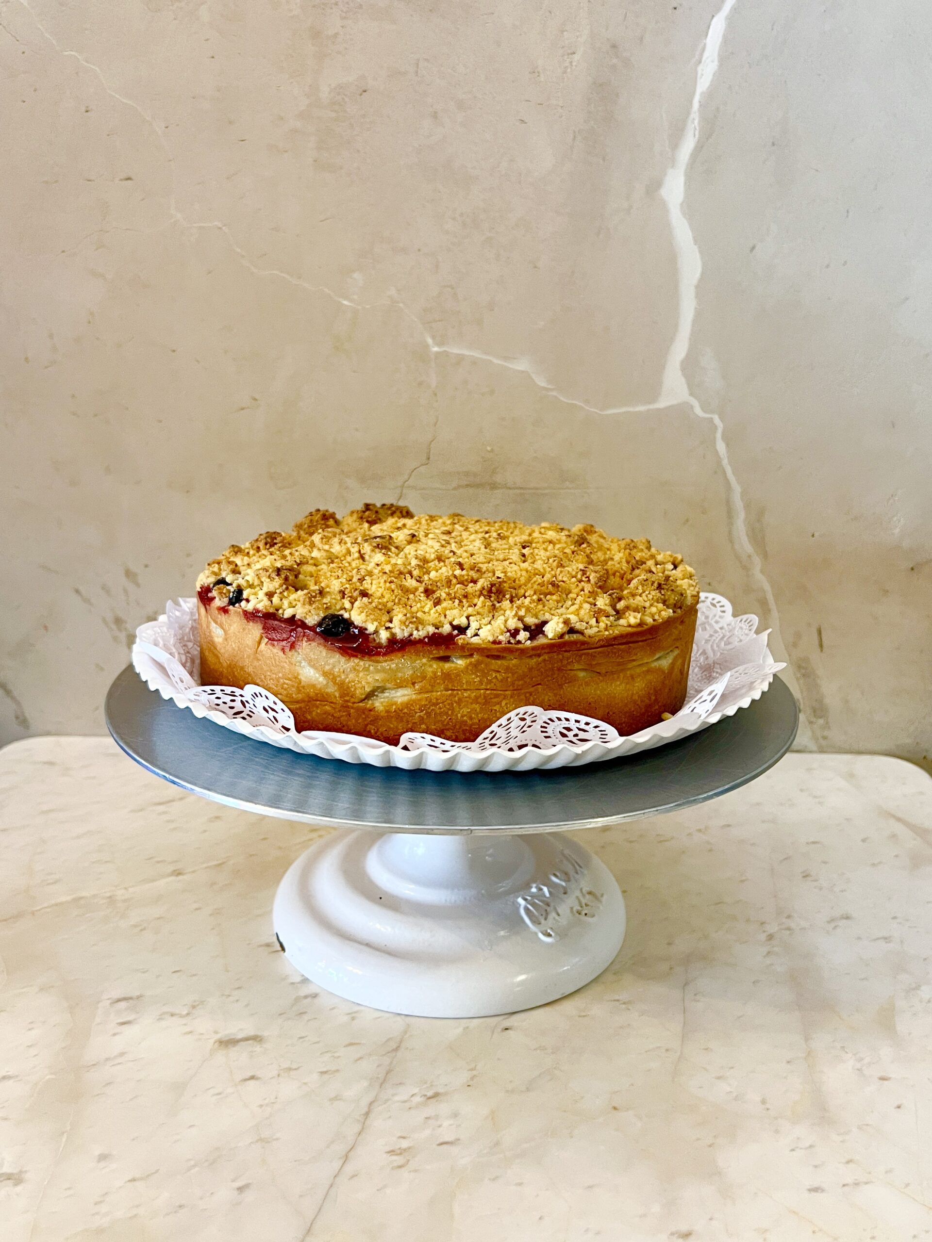 Relleno de fruta natural y costra de mantequilla crujiente.
